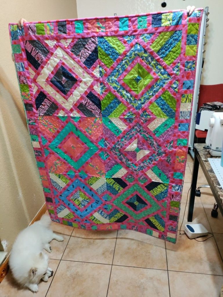 And, it is true everyone loves something different. This one will live with my dear friend Kenetha. She fell in love. She said it reminds her of the kaleidiscope things you looked thru as a child and turned it to make lots of colors. It certainly has lots of colors. I do love the crinkle look you get once you wash them. It gives quilts that awesome vintage look.