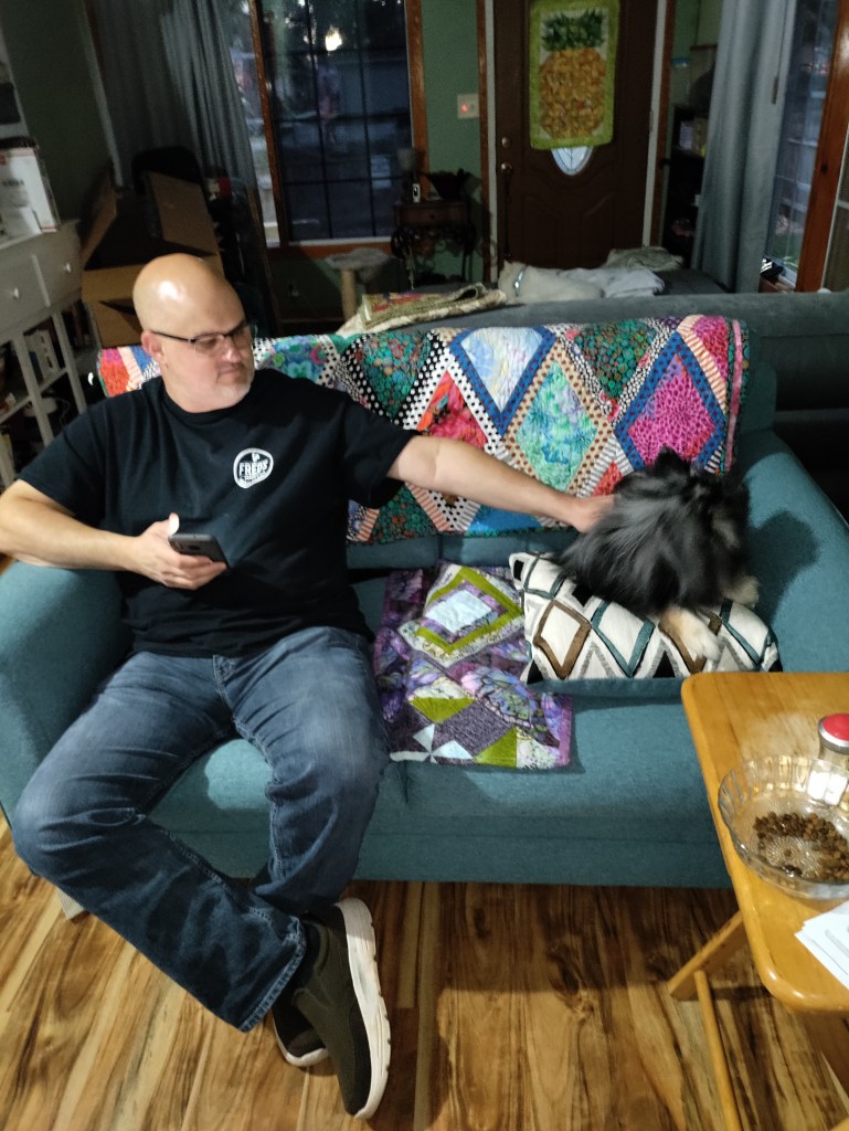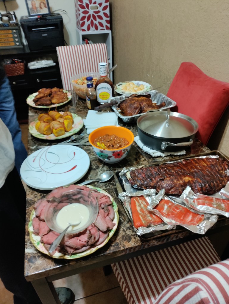 It was so nice to have Mark come visit for Thanksgiving. We didn’t do much more then relax, eat and visit with people but sometimes that’s what life calls for. I did get a great pic of Mark chilling with Merlin and the Thanksgiving table covered with BBQ. Shannon and Robert did most of the work this year and I am not complaining. It was salmon, chicken, pork, tenderloin and ribs all on the new smoker.