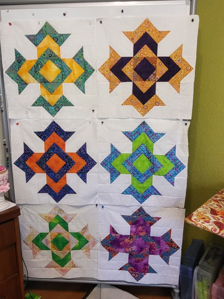 After that, every block I put together had mistakes and had to be ripped out. Every time I sat down the sewing machine acted up, ran out of thread, a piece was missing. You name it. I felt the devil was weighing me down every time I wanted to work on it. Through some prayer and encouragement from friends, I am finally making headway and I have to say the more blocks I make, the more I like them. Here are some of the ones I have finished.