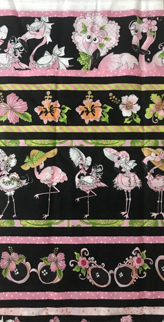 I ran across a Loralie Harris flamingo fabric and thought it might be a fun hexagon as I could get some with stripes and some without so I bought it. I had a chance this past Saturday to cut it out and I think it’s going to be fun. In fact, I thought it was so fun I wanted Claudia to make one using that fabric line in chickens so we ordered the chickens. I can’t wait to see what she comes up with. Her peacock hexagon came out stunning. I’ll post a picture of that when she sends it to me.