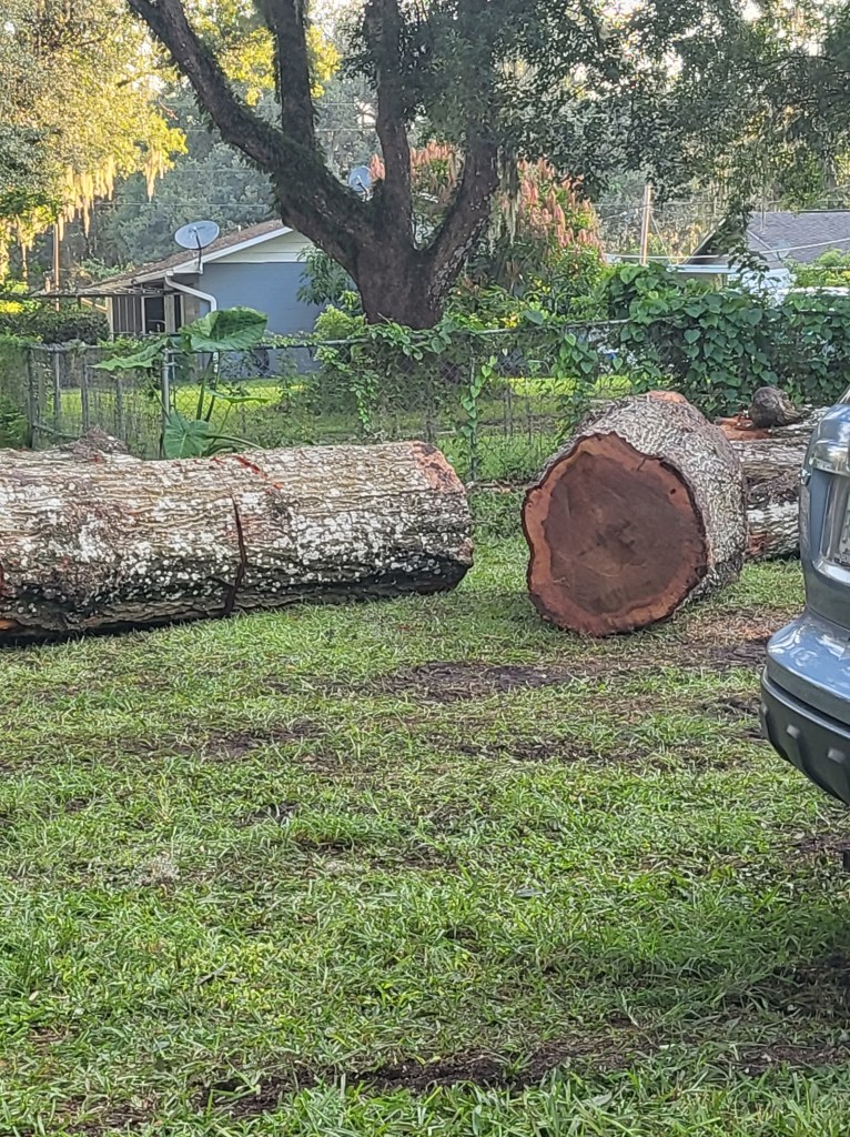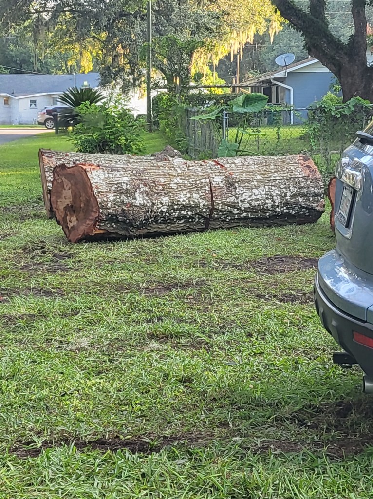 In Florida it’s difficult to decide to cut a large oak down, especially if it’s one that shades your house. But after a year or so of dropping some really huge branches, my daughter and son in law finally had this one taken down.