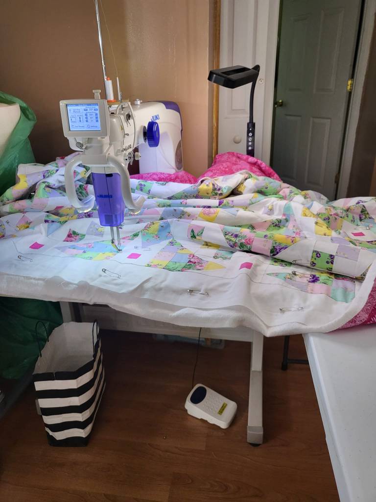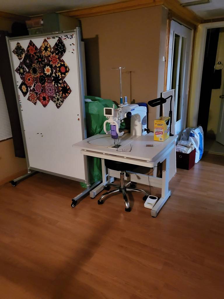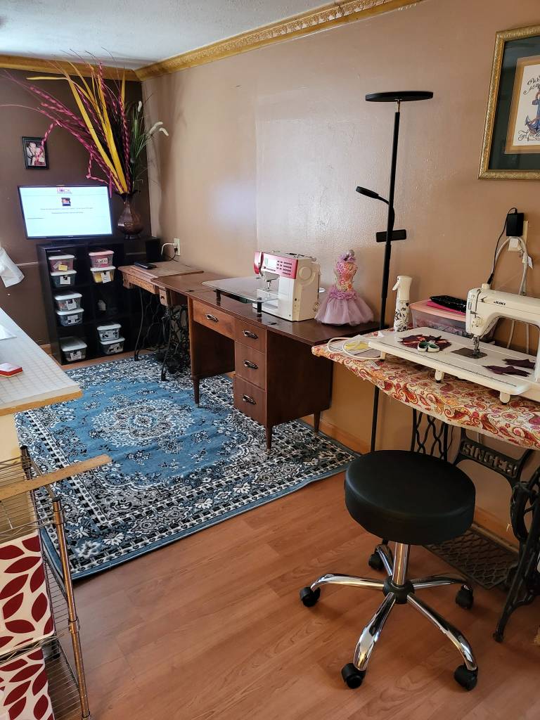 My guest room went from the first picture to the new ones. I’ve changed a couple of lights and added a machine since these pics but I love the room. Next up I’ll be assembling my raffle quilt so Marilyn can baste it.