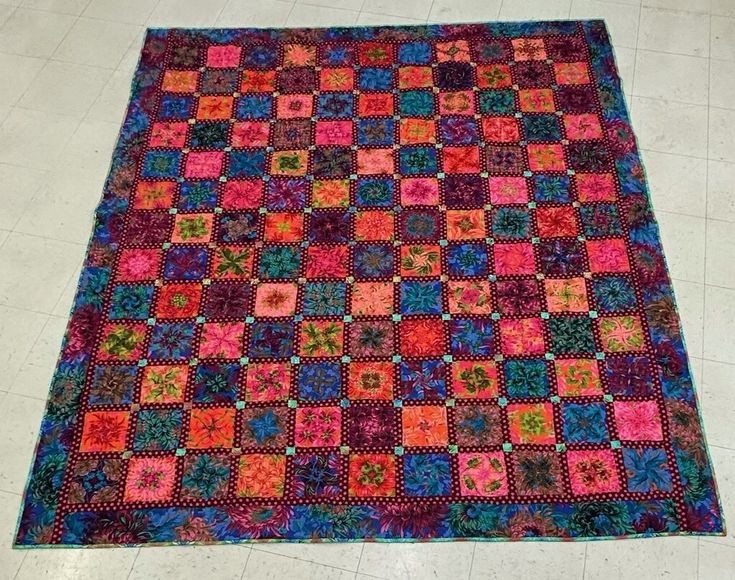 This is Marilyn’s. Oh I wish the picture showed as nicely as the quilt. I loved it. It’s a 4 patch posey but I combined 2 colorways of the same fabric instead of just one color. And of course, everything is better with polka dots.